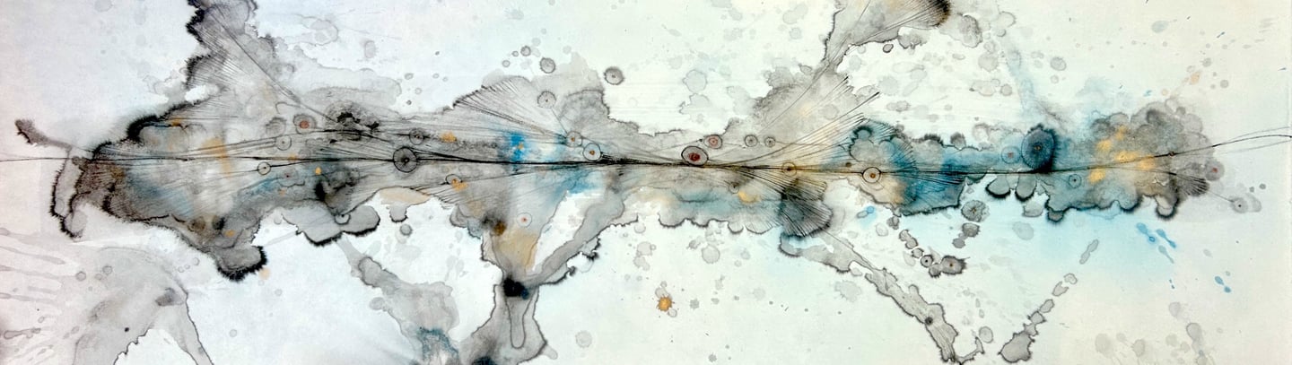 24030083FY, Resonance©2024, Fumiyo Yoshikawa, sumi-ink, mineral and natural colors, gold on kozo paper, 19x54inch