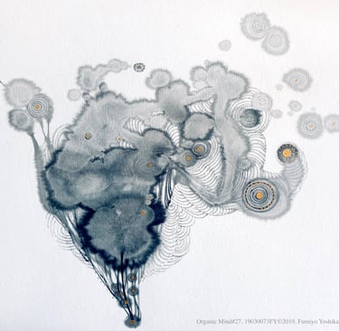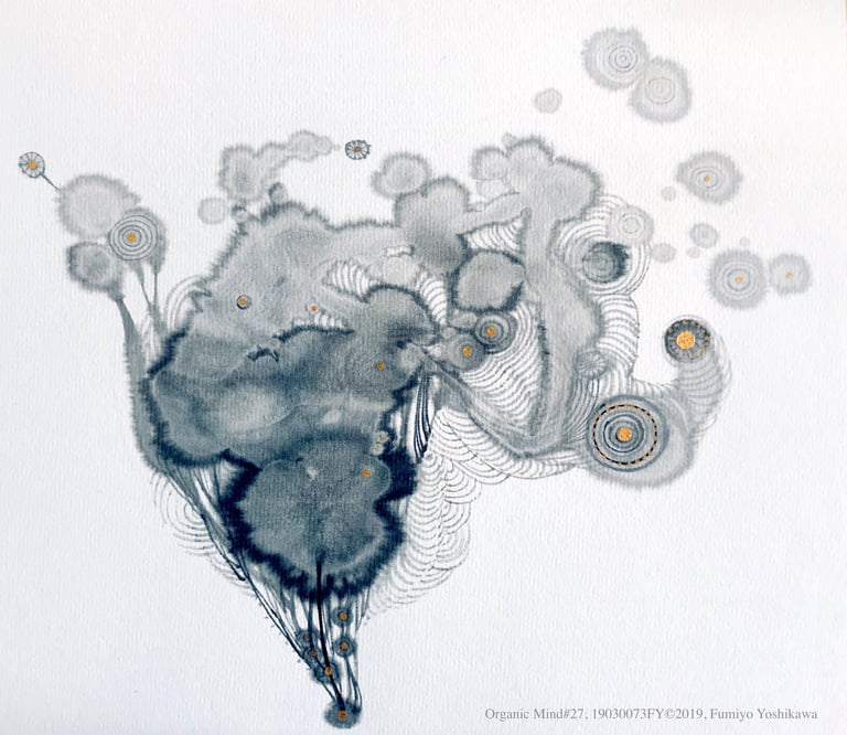 19030073FY Organic Mind 27©2019, Fumiyo Yoshikawa, 10x11, 16x20, Sumi-ink, gold on Kozo Shishi