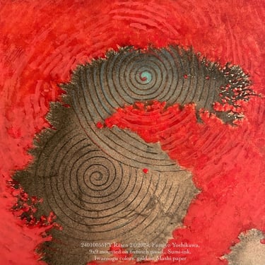 Resonance Interwinded 1-3©2024, Fumiyo Yoshikawa, sumi-ink, mineral and natural colors, gold on kozo paper, 19x18inch